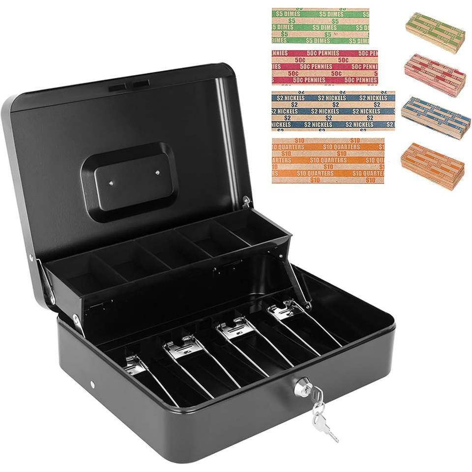 Cassetta di Sicurezza in Metallo con Serratura a Chiave e Vassoio per 100 Monete, Grande Cassetta Portavalori per Registratore di Cassa POS