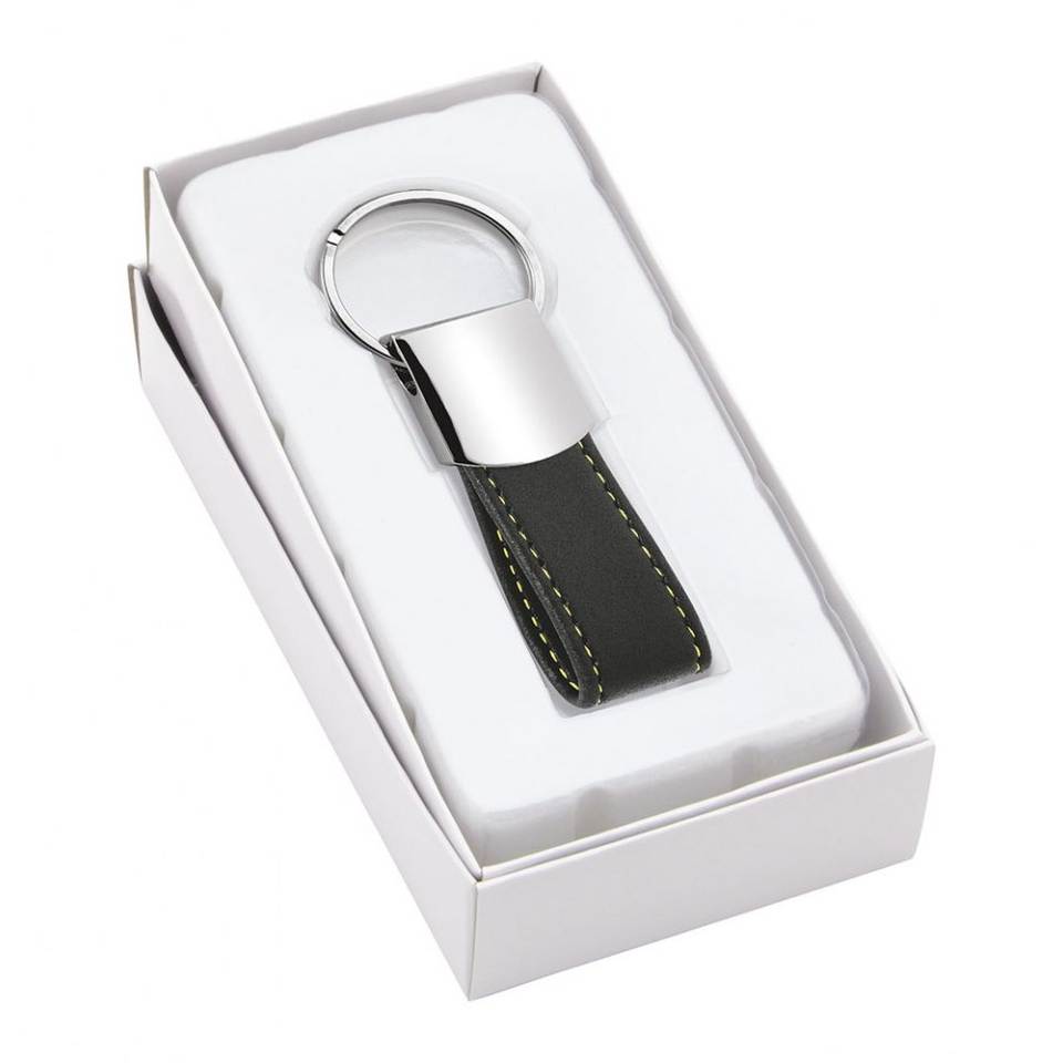 Keychain Carabiner with Black PU Leather and Yellow Stitching Zinc Alloy Metal with Plastic Unique Design for Style Durability