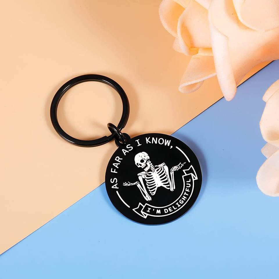 Keychain Gifts Funny Skeleton As Far As I Know I'm Delightful Key Chains Key Rings Colleague Sarcastic Work Gifts Keychain