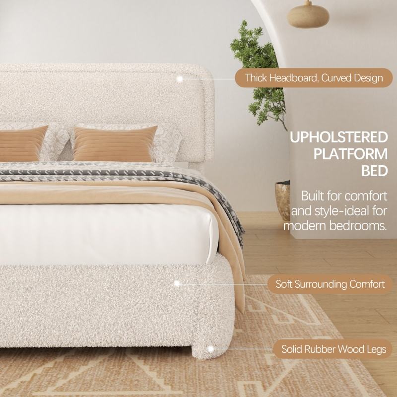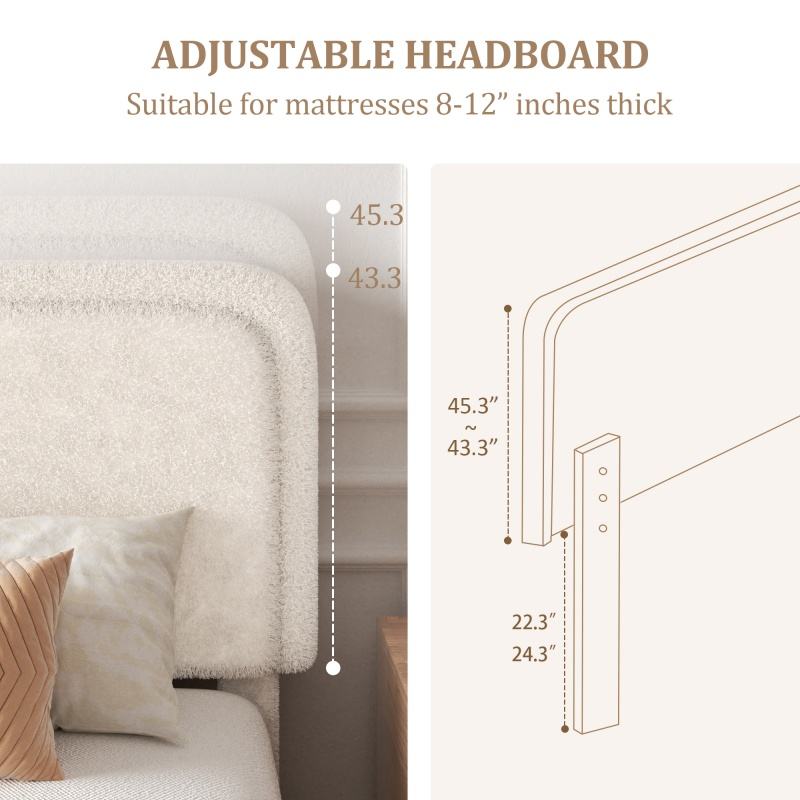 Base letto matrimoniale moderna regolabile Keynote con testiera curva imbottita in velluto, capacità di carico 800 libbre, letto a piattaforma
