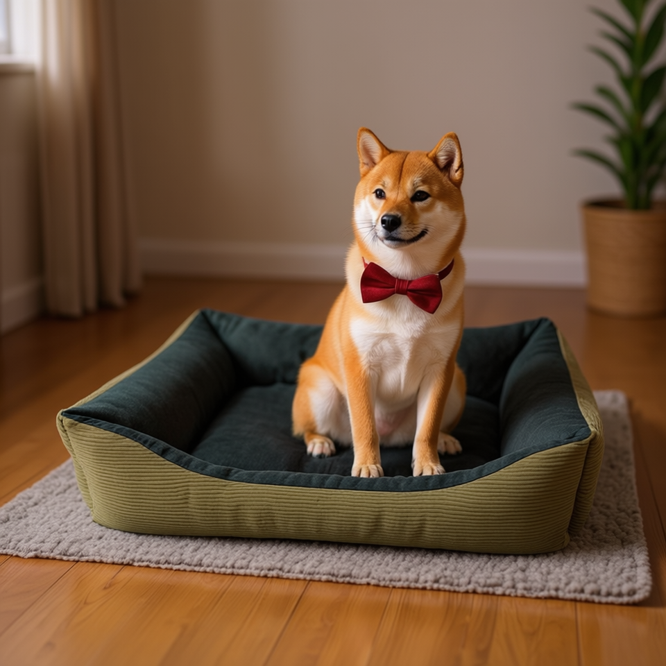 Khaki 3-Piece Super Soft Corduroy and Crystal Pet Bed Nest Set for Dogs