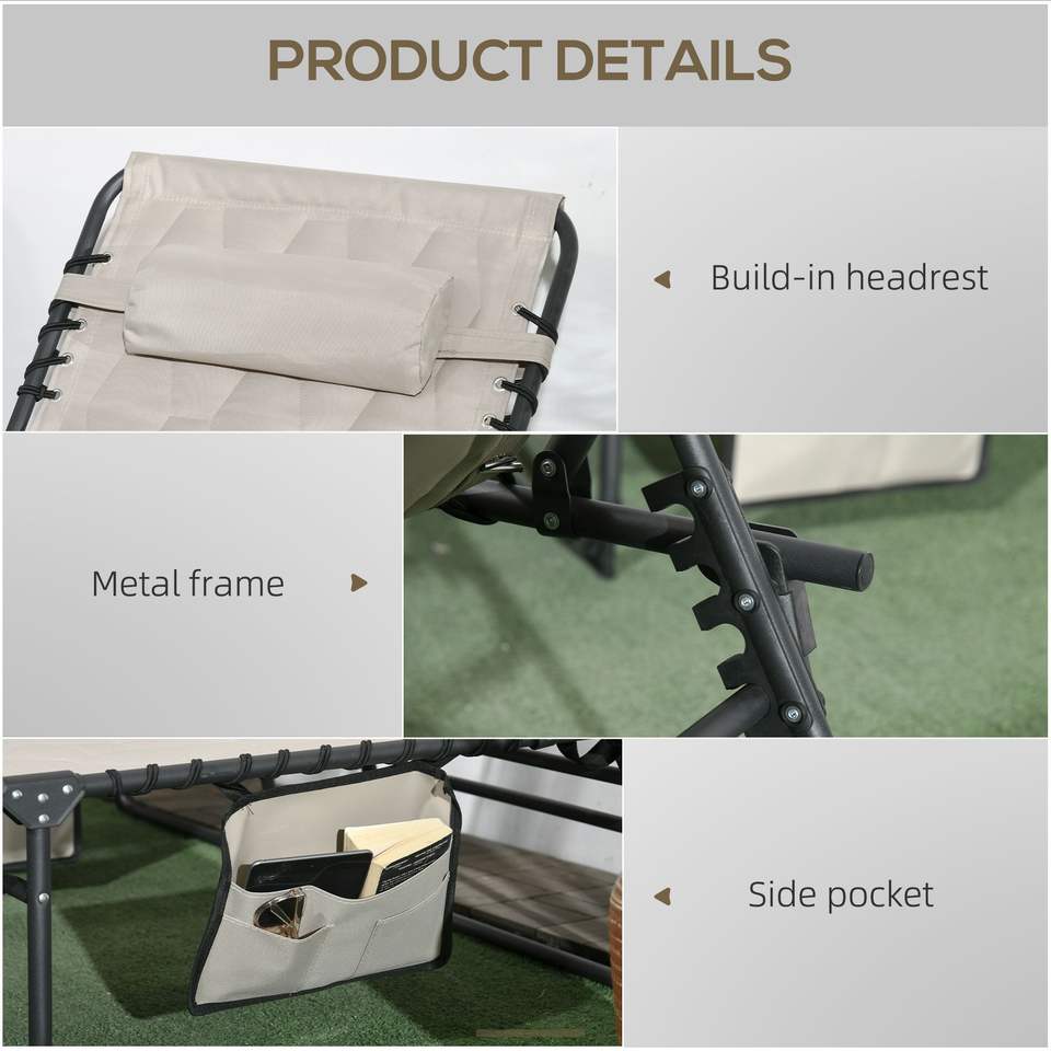 Set di Sdraio Reclinabili Regolabili per Esterni in Colore Kaki, Lettini Prendisole Versatili e Confortevoli