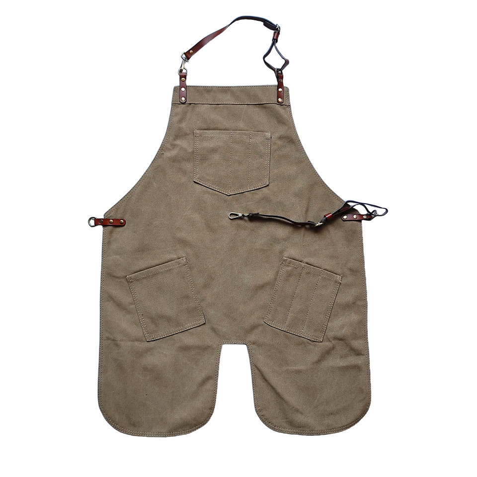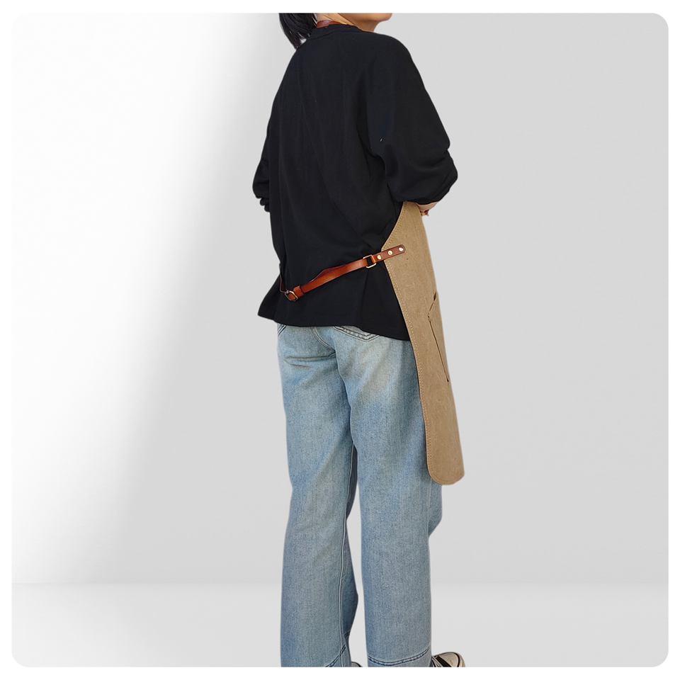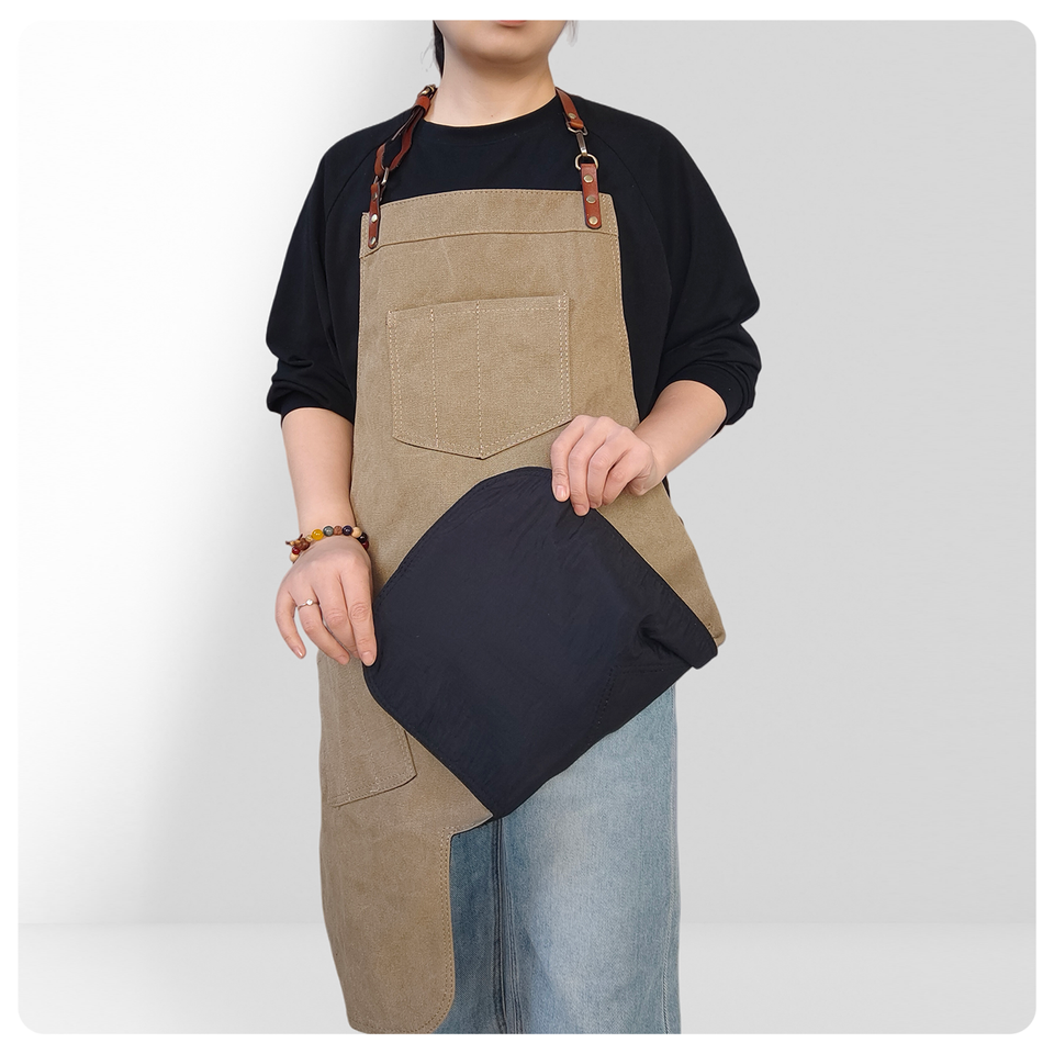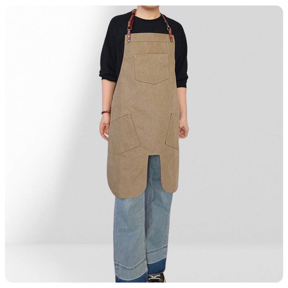 Khaki Canvas Neck-Hanging Apron with Irregular Hem - Work Uniform for Coffee Shops, Milk Tea Stores, Cake Shops & Hair Salons