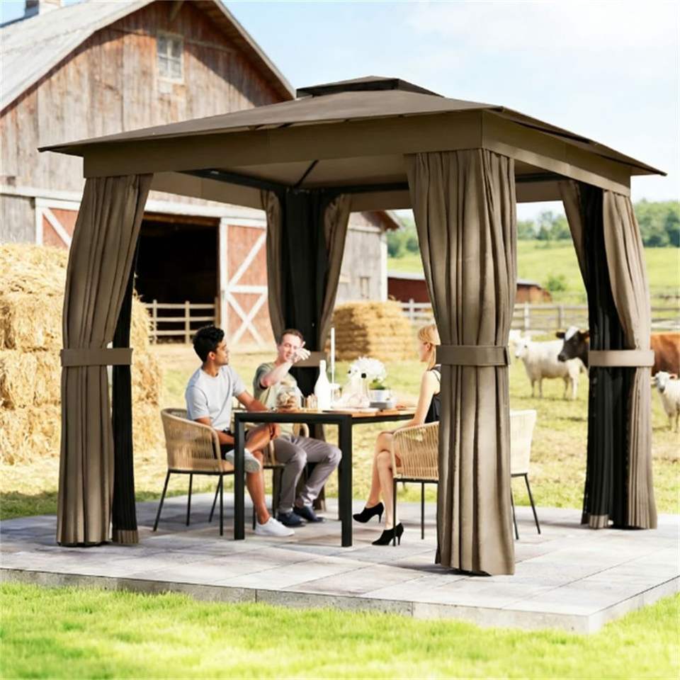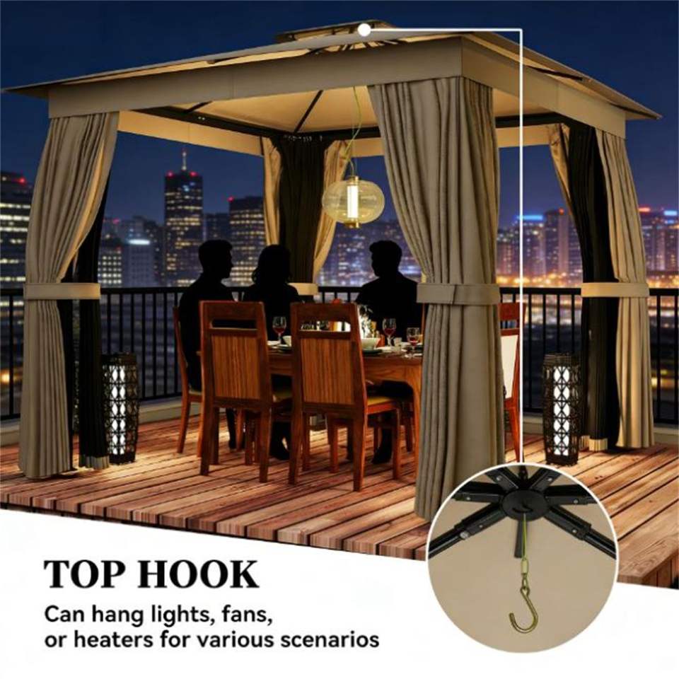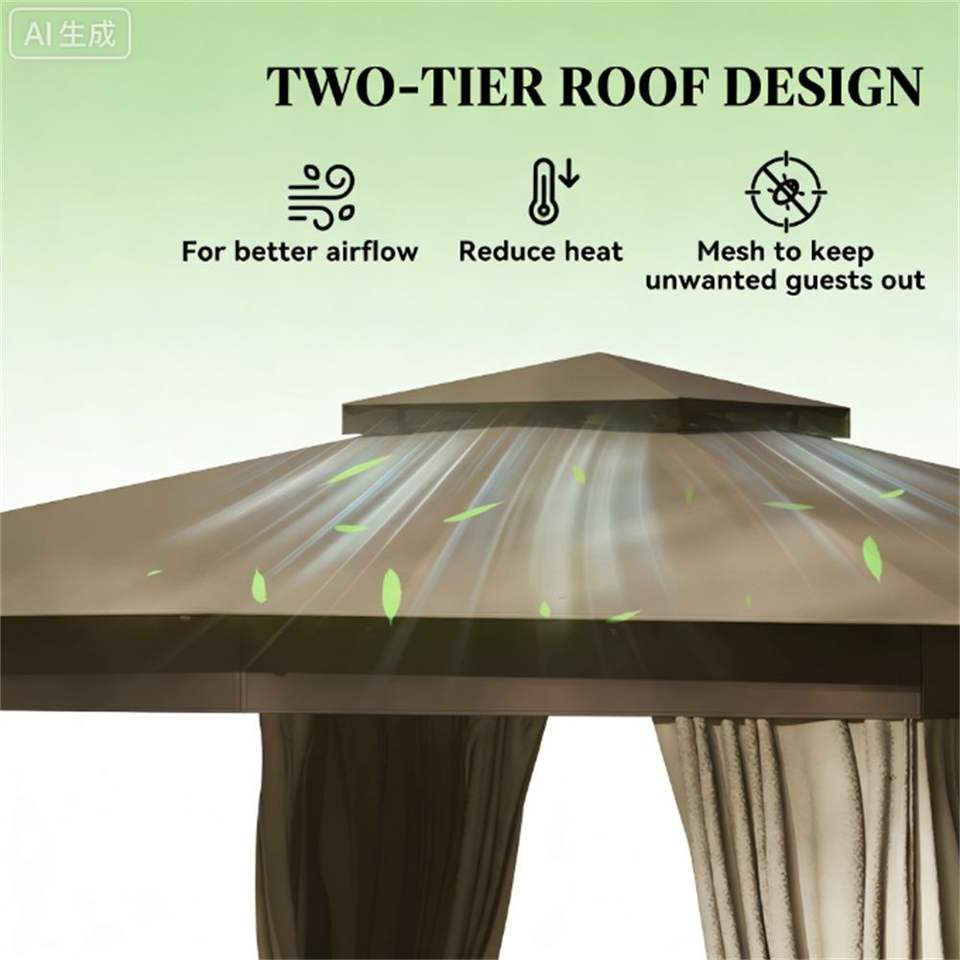 Padiglione con Tetto Morbido Color Kaki con Tende a Baldacchino per Terrazze, Pergole e Gazebo
