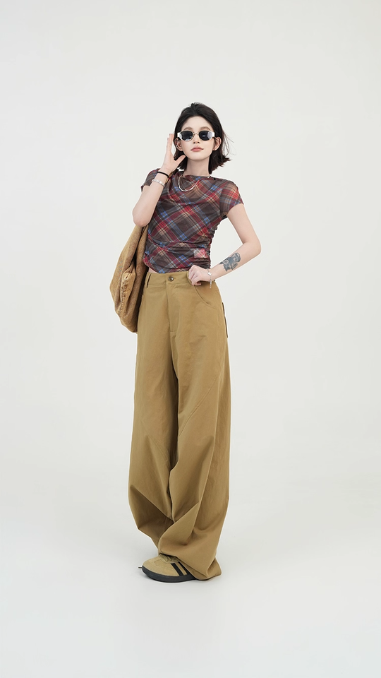 Khaki High-waisted Straight-leg Casual Pants for Women, Autumn New Style, Korean Loose Versatile Wide-leg Floor-length Trousers