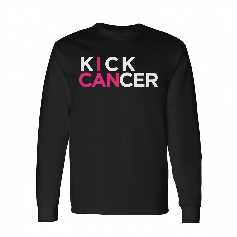 T-shirt a maniche lunghe Kick Cancer per il supporto e la sensibilizzazione sui sopravvissuti