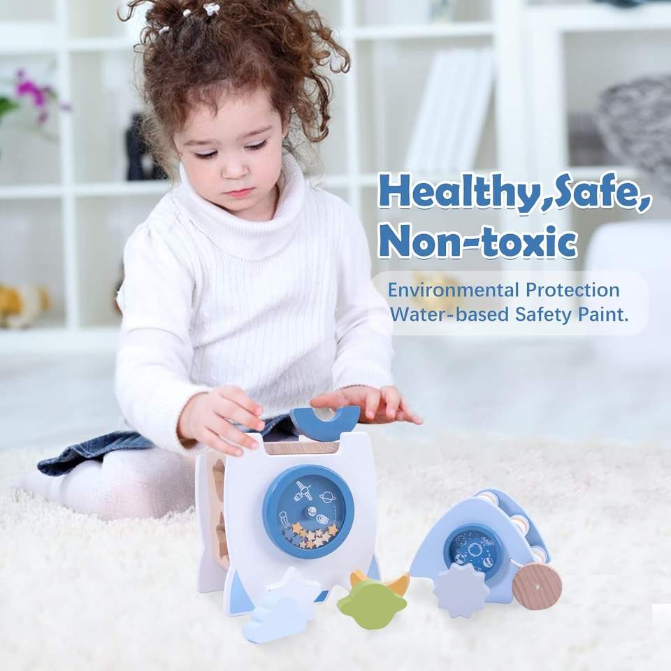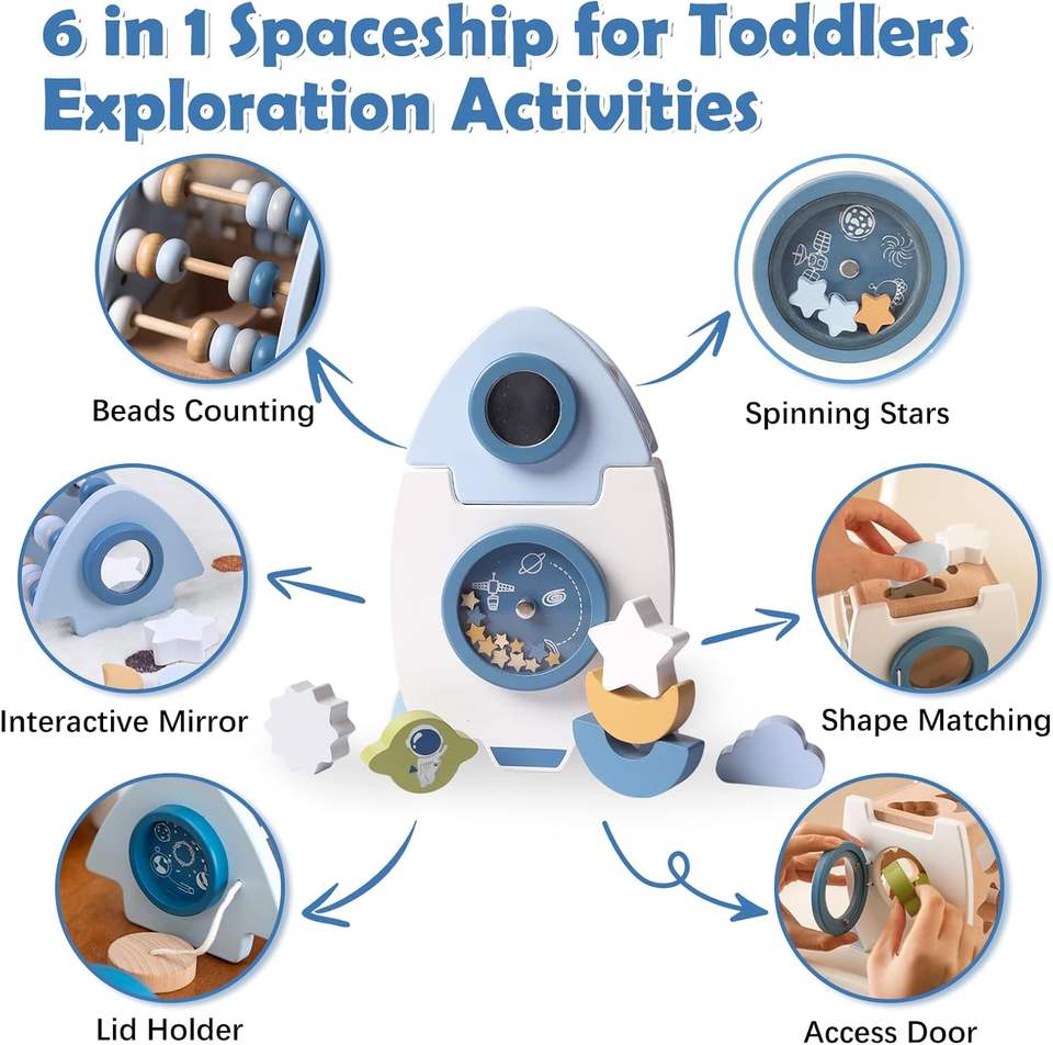 Kid Educational Toys Hot Selling Children's Games Birthday Gift Toddler Rocket Toy Kids Wooden Space Toy for Baby 1 Year Old