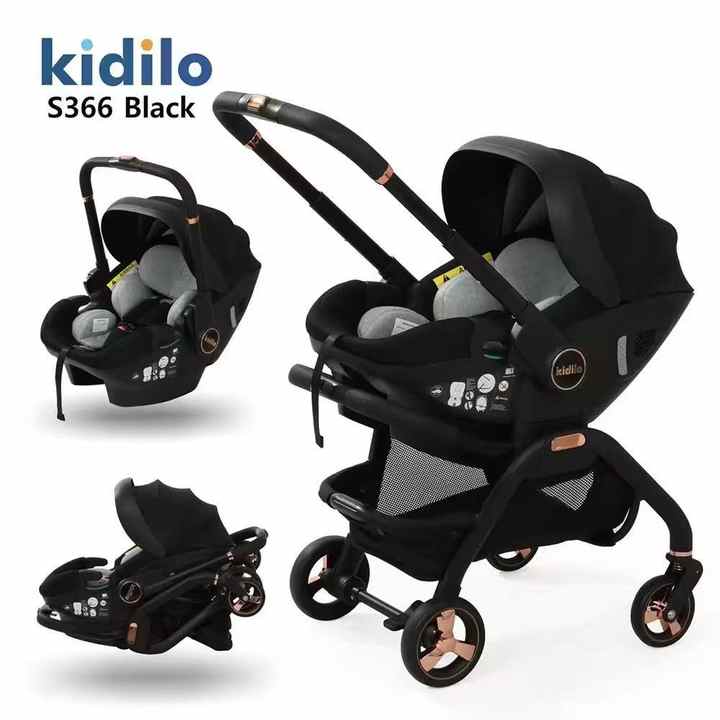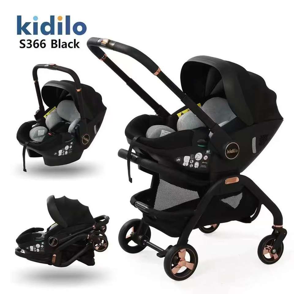 Kidilo S366 Passeggino 3 in 1 con Seggiolino Auto Pieghevole per Neonati, Carrozzina Compatta per Bambini