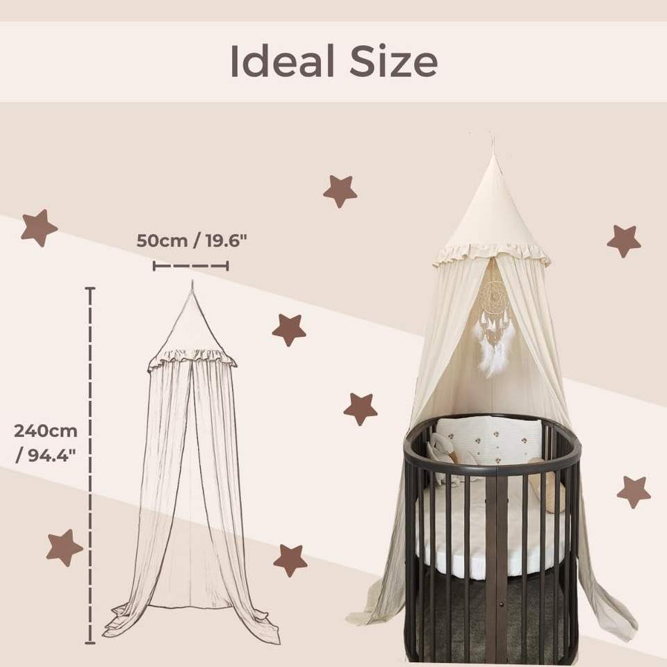 Baldacchino per Letto Bambini con Volant in Colori Pastello Neutri, Tenda in Cotone e Poliestere per Cameretta, Zanzariera per Culla