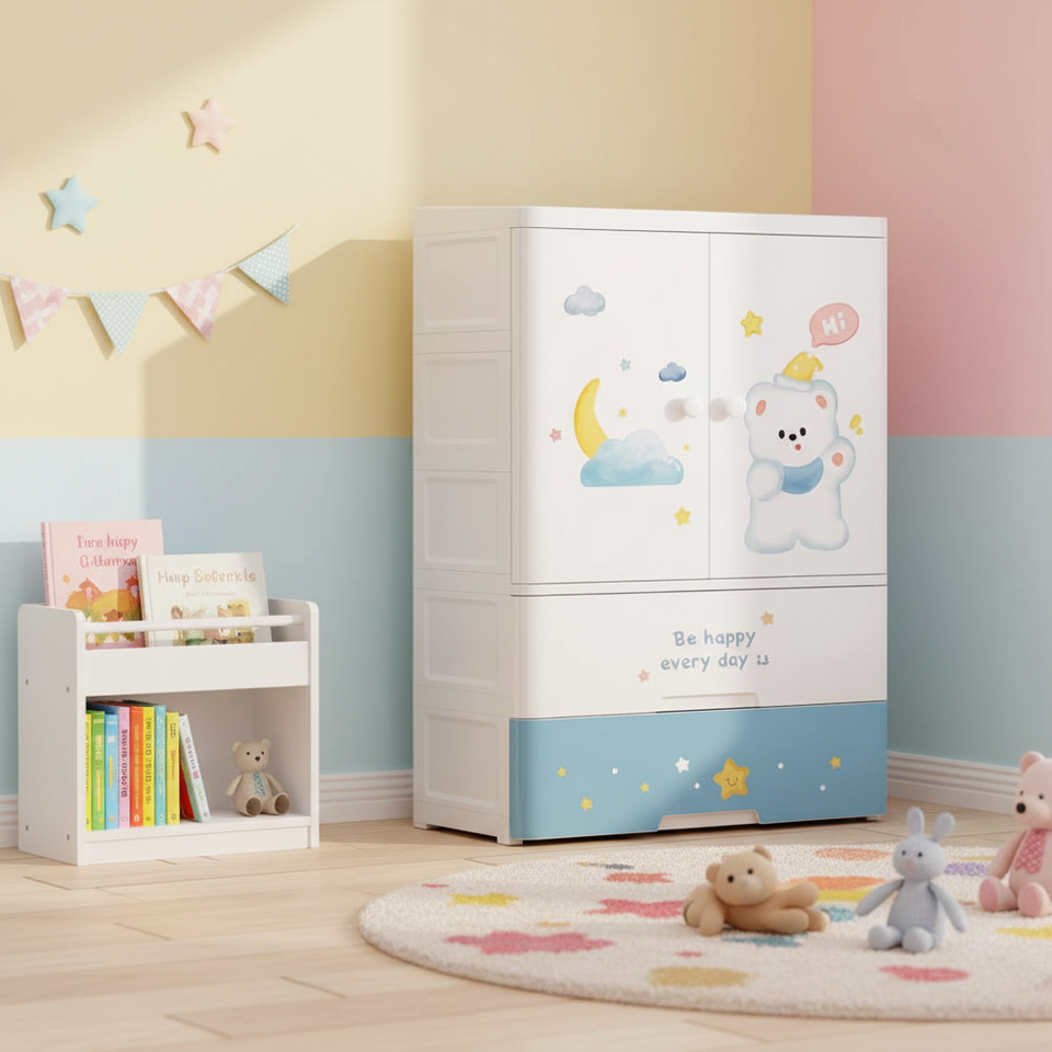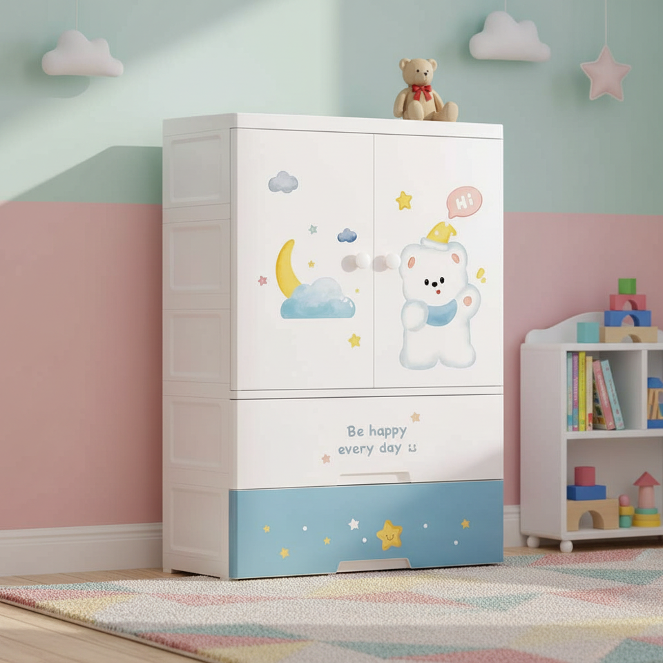 Kids Bedroom Cute Cartoon Plastic Wardrobe Organizer for Clothes Portable 3 Layer Modern Durable Baby Cabinet Clothing Wardrobe