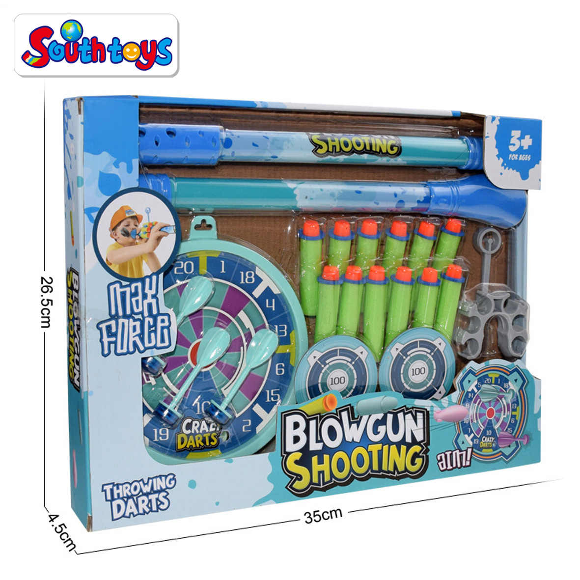 Kids Blowing Shooting Darts EVA Soft Bullet Blow Blaster Gun with Target and Bullets