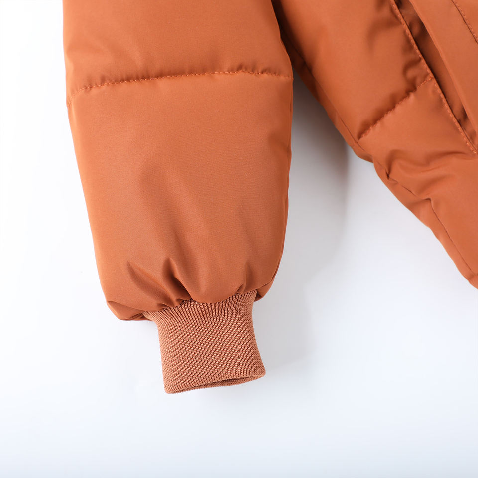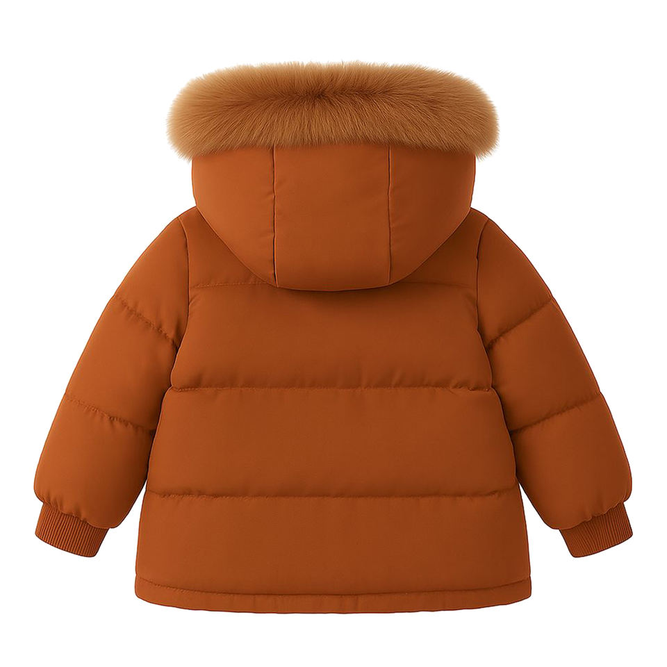 Kids Boys Eco-Friendly Thick Waterproof Faux Fur Hooded Zipper Coats Caramel Solid Color Winter Warm Outwear for 2-7Y