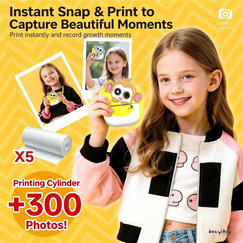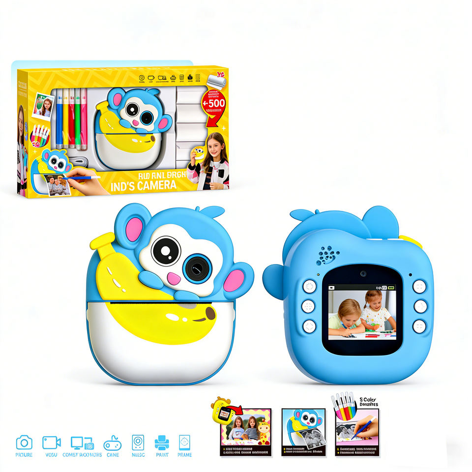 Fotocamera Istantanea per Bambini con Funzione di Pittura, Design Scimmia Cartone Animato, Fotocamera Digitale Educativa per Bambini