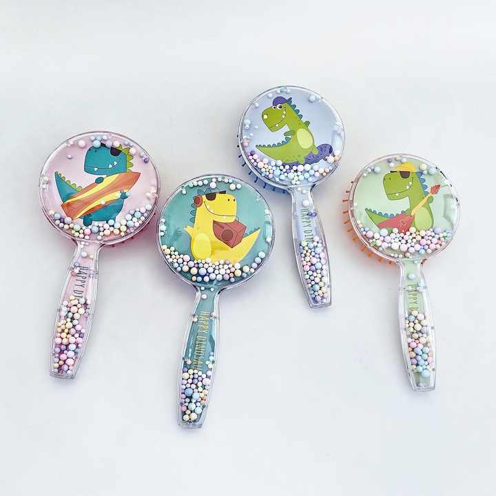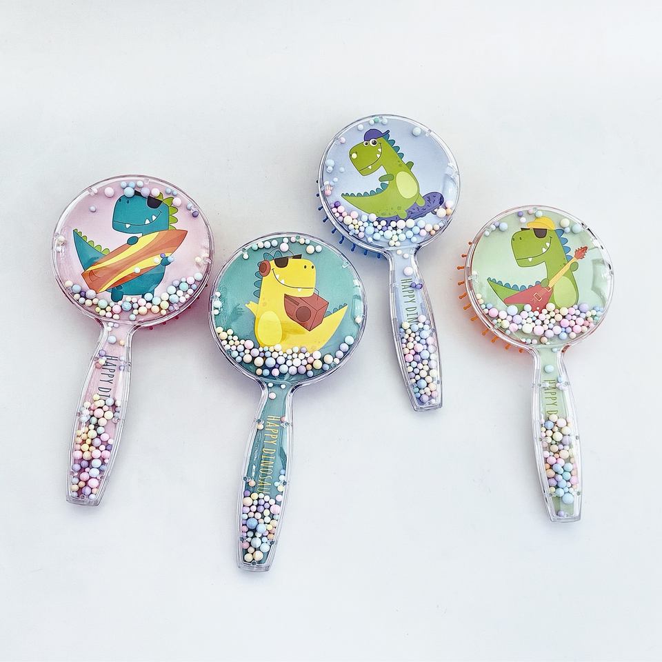 Kids Children Gifts Round Dinosaur Paddle Hair Brush Anti Nudos Smooth Hair Care Crystal Foam Ball Transparent Plastic Hairbrush