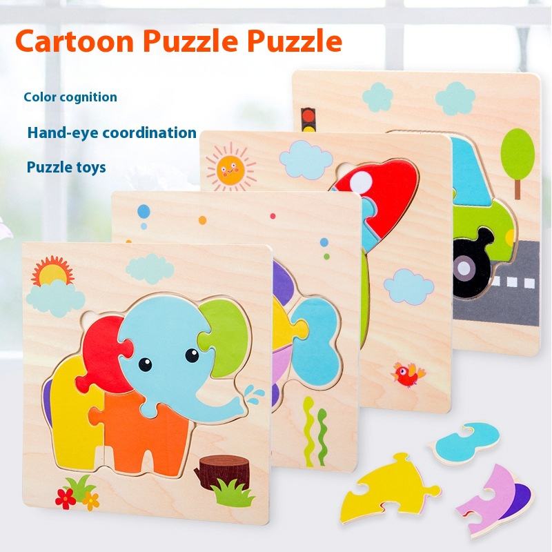 Kids Educational 3D Puzzle Toys Wooden Montessori Animals Cartoon for Early Learning Cognition & Intelligence Gift Kids
