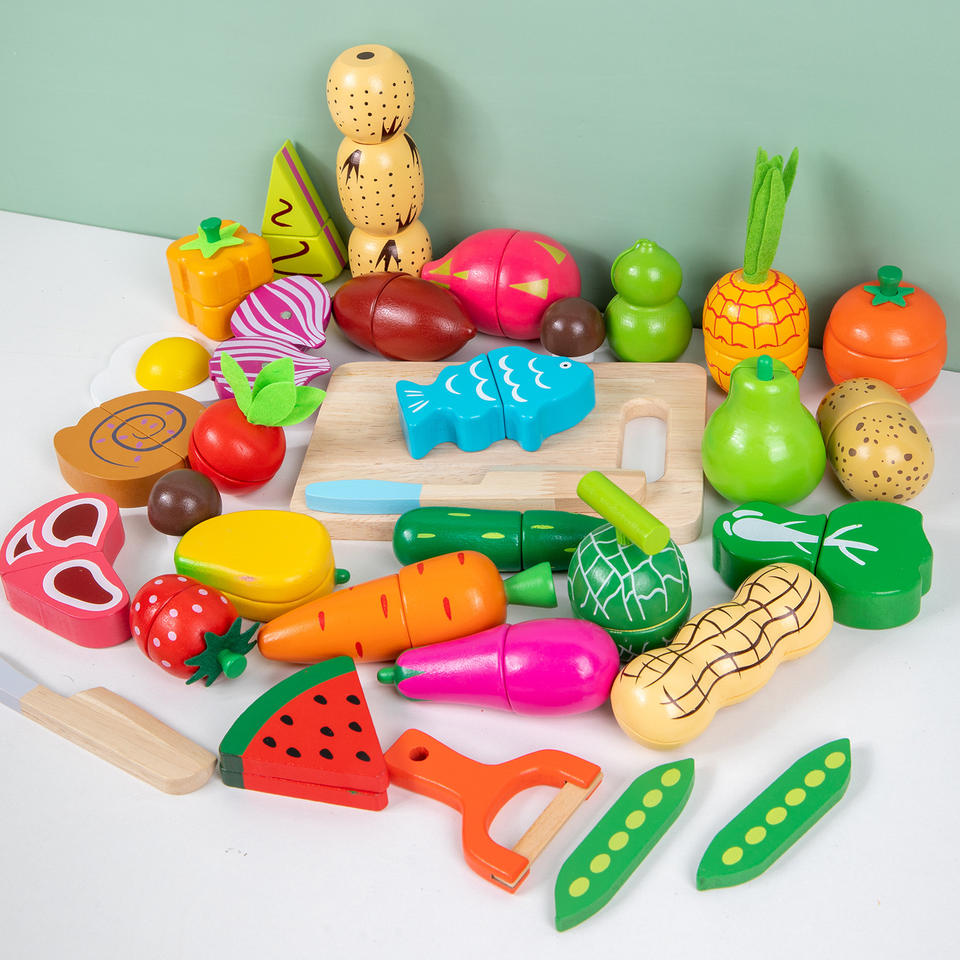 Kids Educational Toy Play Kitchen Wooden Fruit Vegetable Set Children Cut Fruit Toys Vegetables Cut Toy