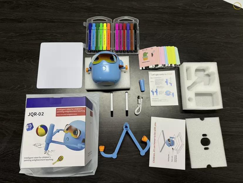 Robot Giocattolo Educativo Intelligente per Bambini con Funzione di Disegno, Macchina per Pittura AI con Carte Interattive e Musica