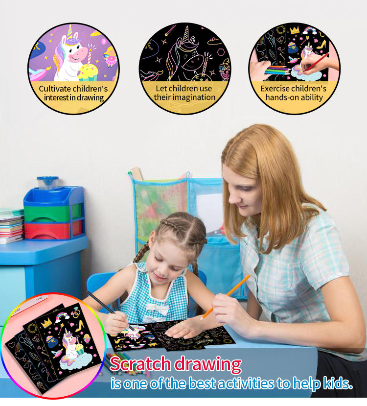 Kids Magic Rainbow Color Scratch Art Cartoon Painting Paper Card Drawing Boys and Girls Educational Book