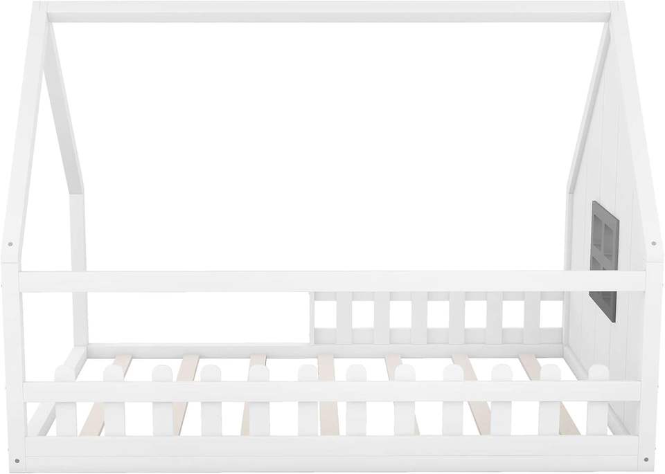 Kids Montessori House Bed Children Bedroom Furniture Modern Simple Wood Bed Frame Floor Kids Bed With Guardrail