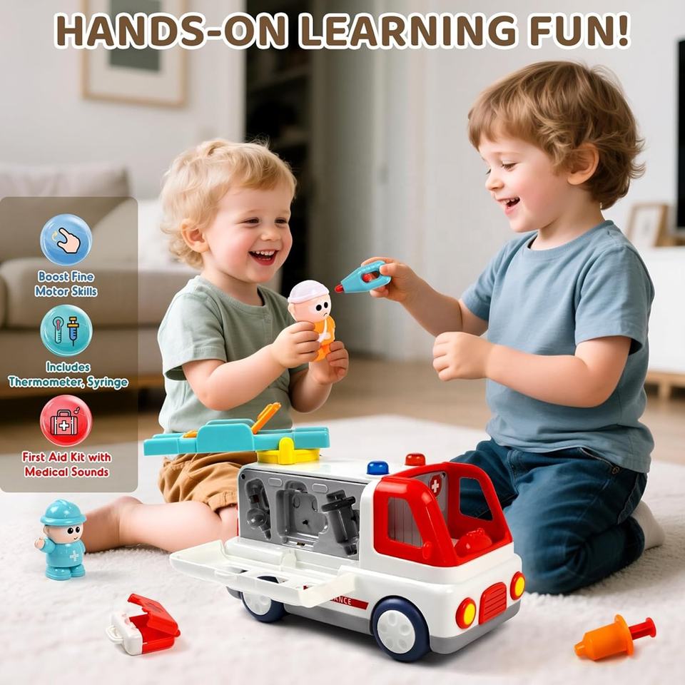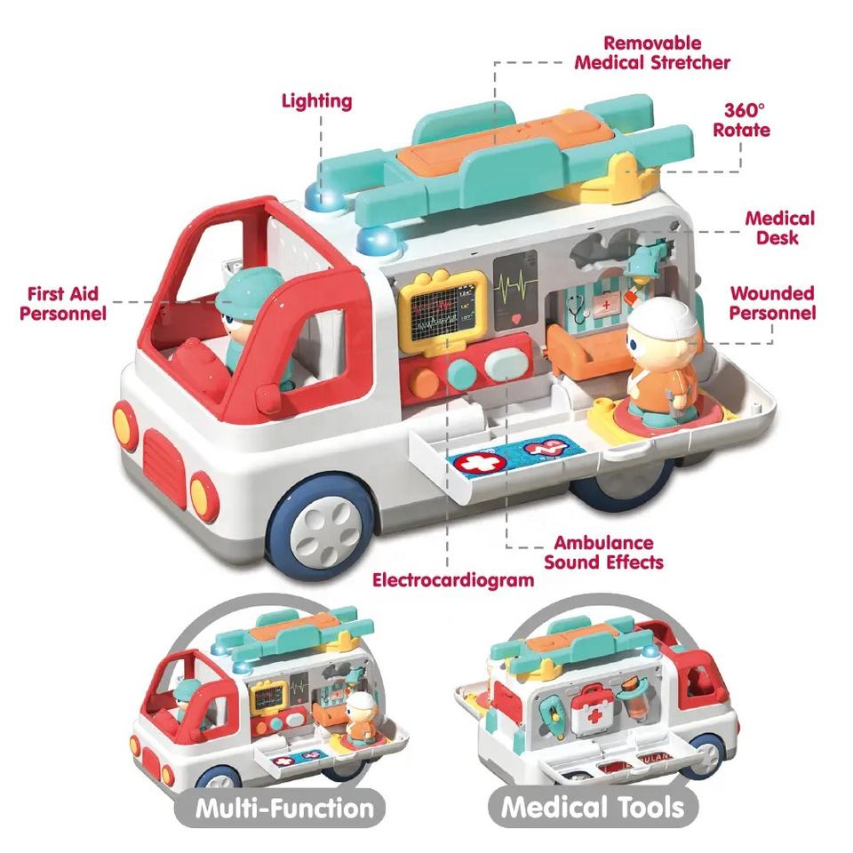 Giocattolo Ambulanza Multifunzionale per Bambini, Gioco di Ruolo Educativo, Veicolo di Soccorso con Barella, Kit Medico con Luci e Suoni