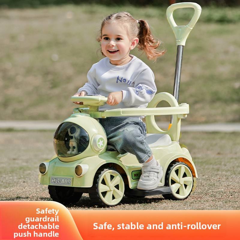 Auto Giocattolo per Bambini con 3 Modalità: Cammina, Scivola, Gira, con Barriera di Sicurezza Rimovibile e Design Anti-Ribaltamento