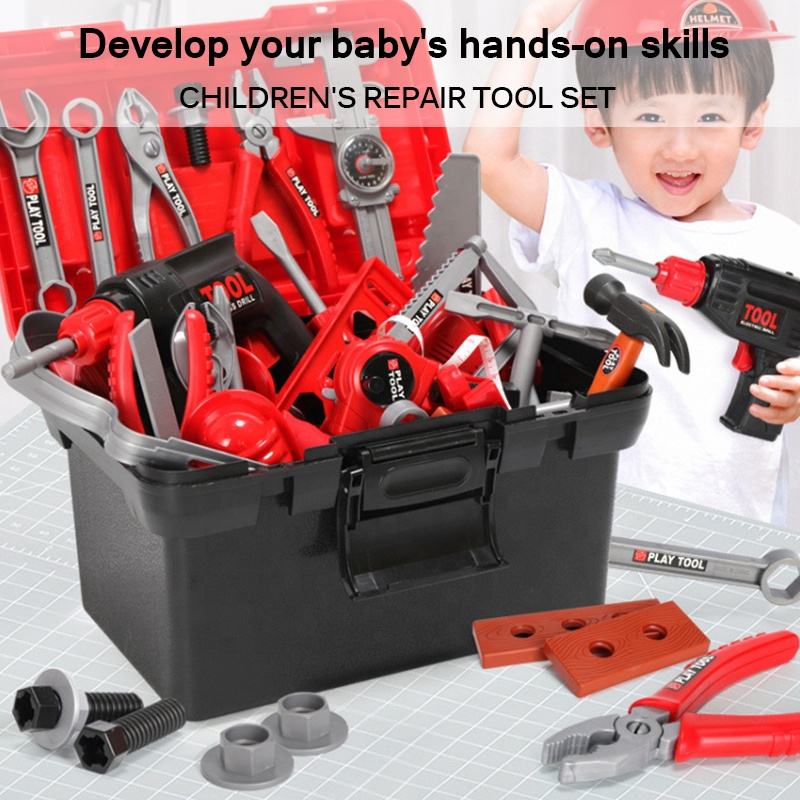 Vantaggio: set di giocattoli per strumenti di riparazione:Incluso 1 cassetta degli attrezzi, grande capacità, può essere conservato e coltivato