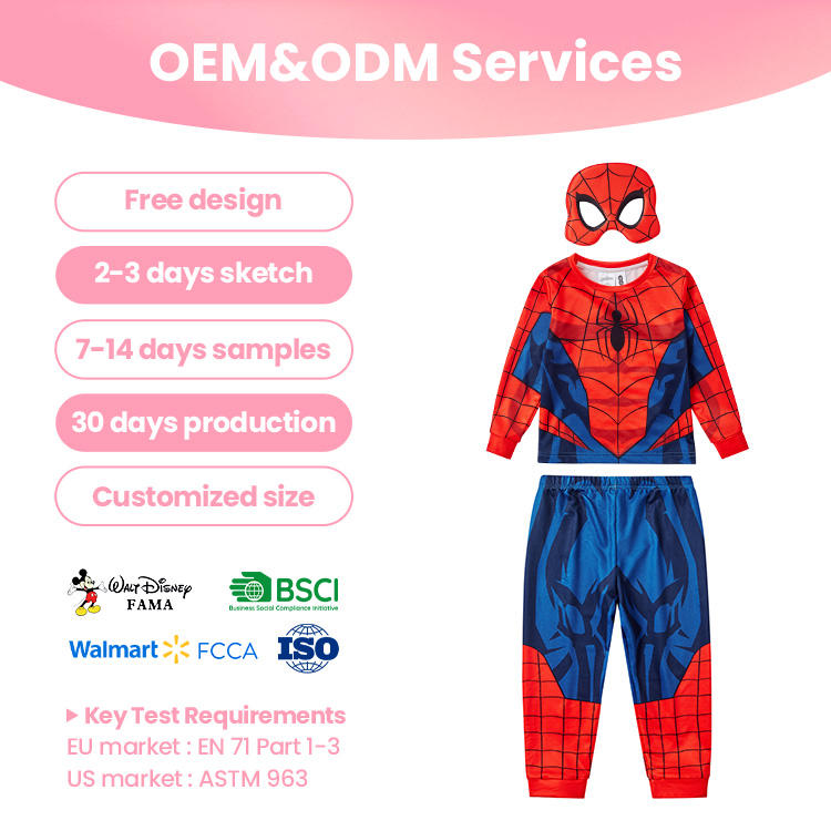 Set Pigiama Costume Spider-Man per Bambini con Maschera, Maniche Lunghe per Travestimenti e Pigiameria, Fornitura all'Ingrosso