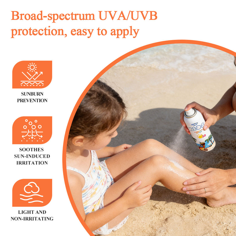 Spray Solare per Bambini SPF30+ Naturale Organico Ipoallergenico Resistente all'Acqua per Pelle Sensibile dei Bambini Cura all'Aperto