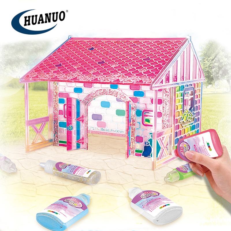 Kids Toy Educational Drawing 3d Puzzle House Painting Instant Sticky Art Craft DIY Kit