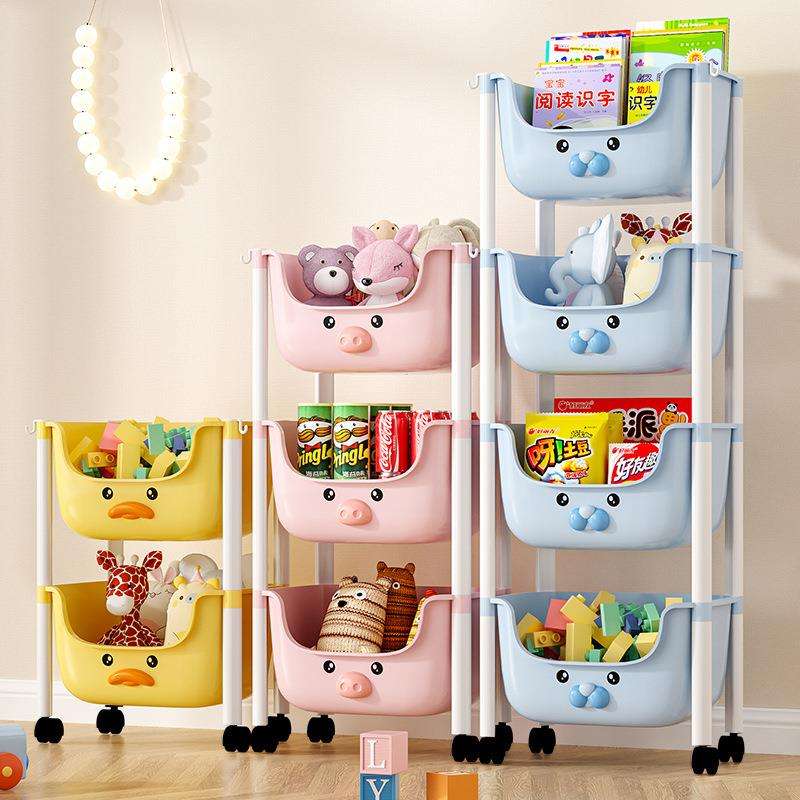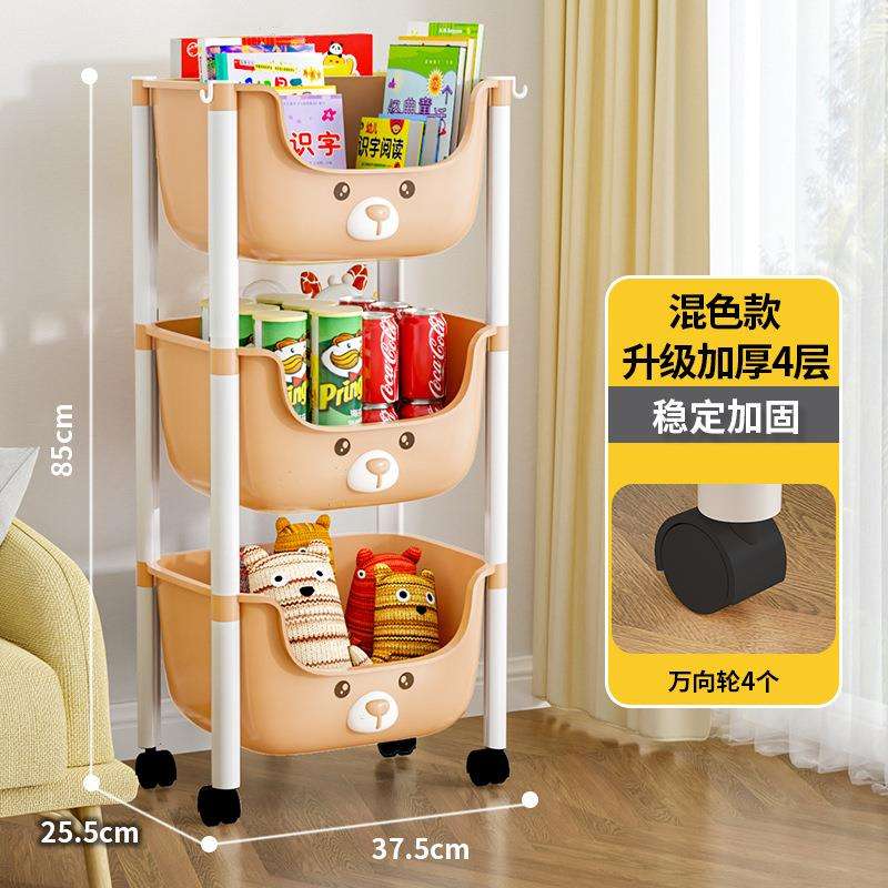 Scaffale Portaoggetti per Bambini con Ruote, Organizzatore Mobile a 3 Ripiani per Libri, Giocattoli e Alimenti, per Camera da Letto e Cucina