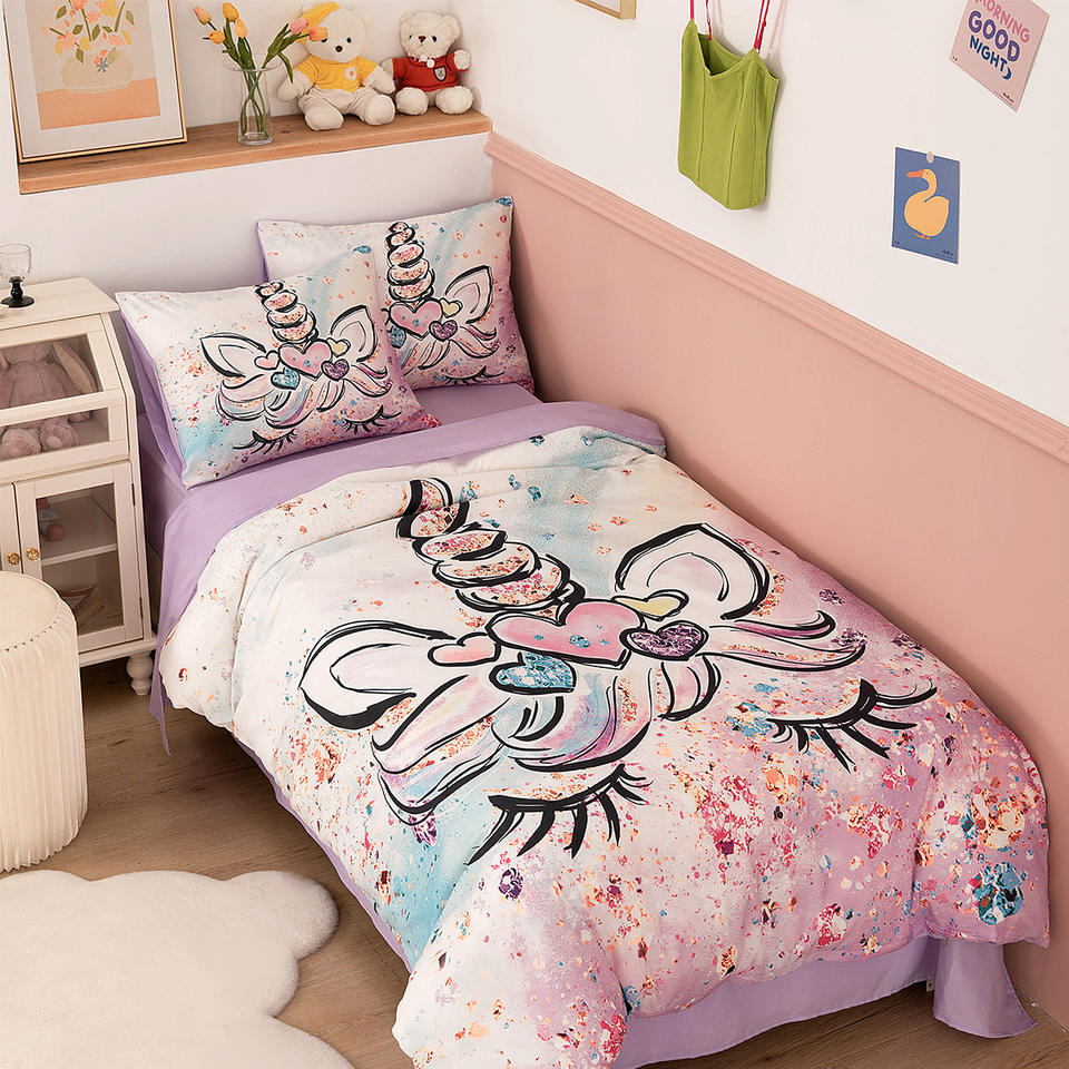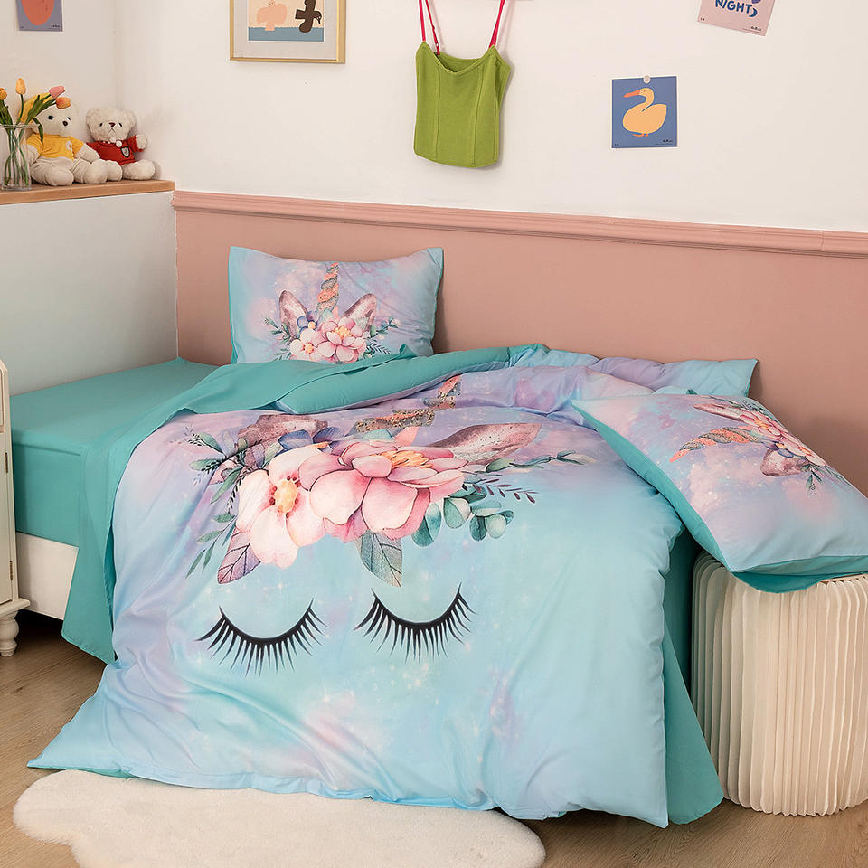 Kidsren's Fantasy Unicorn Series Three-Piece Bedding Set Digital Printing Cartoon Sheet Duvet Cover for Home New Export