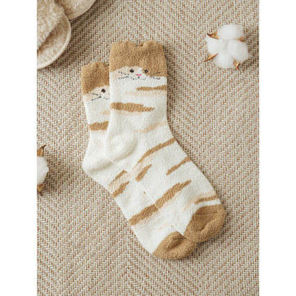 Kikikiya Women's Sleepwear Brown Cat Family Sleep Socks