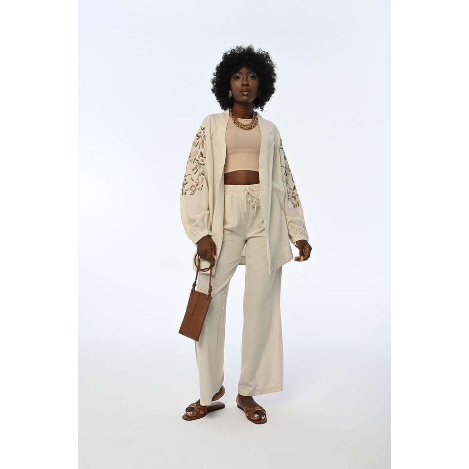 Giacca Kimono con motivo ricamato sul retro e sulle maniche