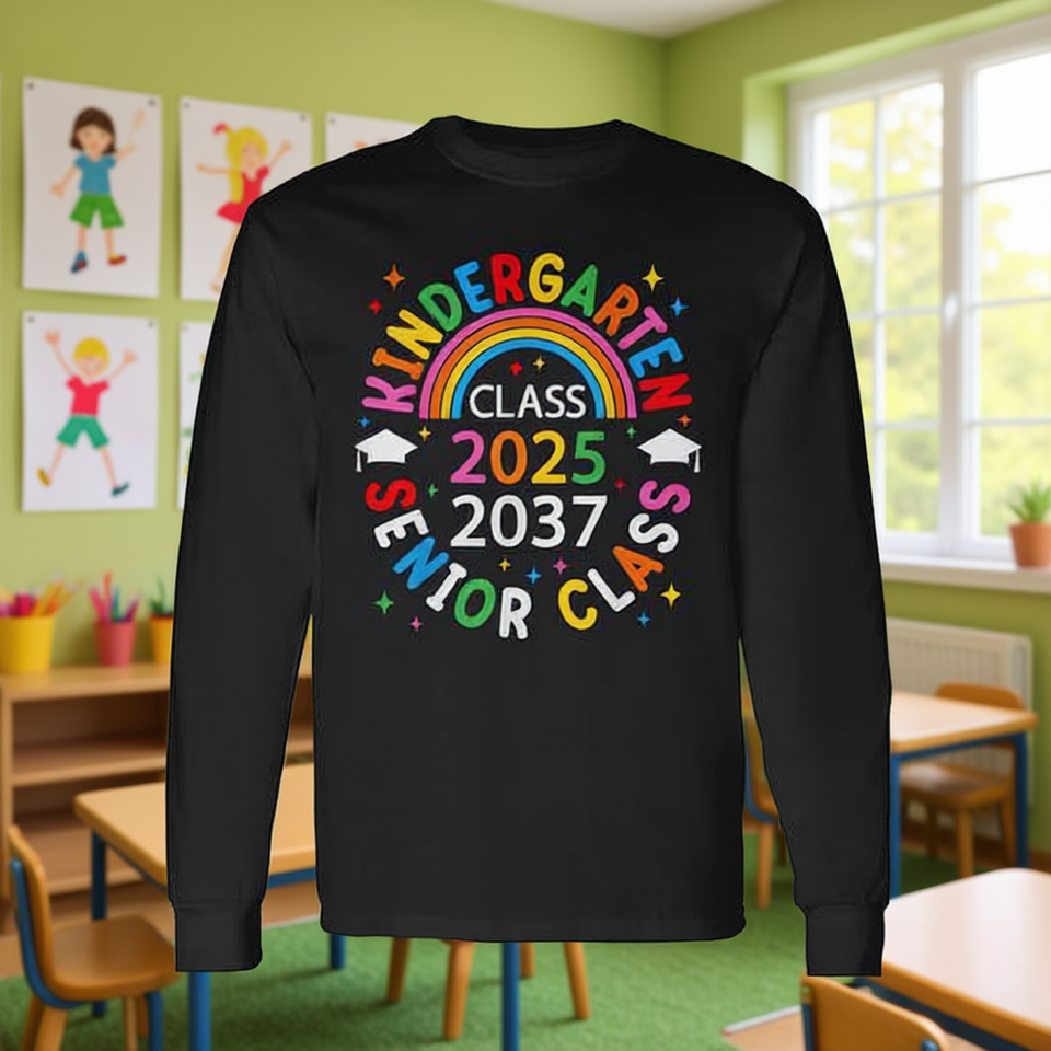 Maglietta a Maniche Lunghe Unisex per Bambini della Classe dell'Asilo 2025 e della Classe Superiore 2037 con Stampa Digitale