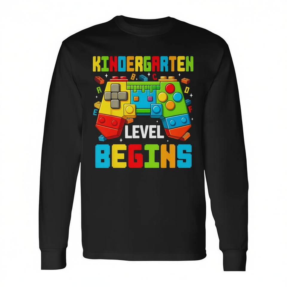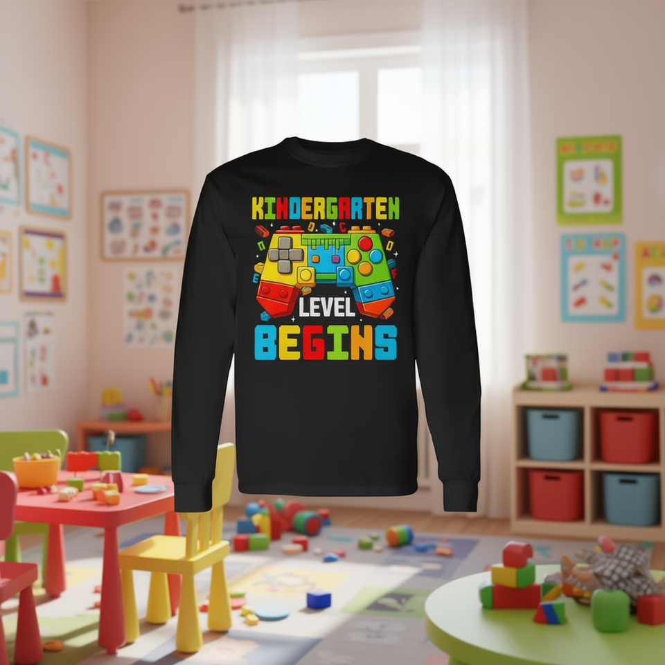 Maglietta a maniche lunghe per bambini con design da gioco, livello dell'asilo