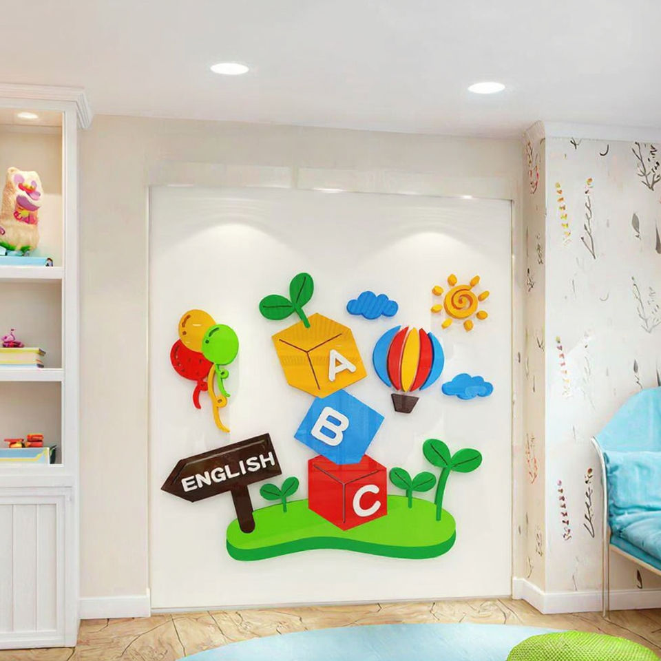 Adesivo Murale 3D a Forma di Albero per Asilo Nido, Classe di Inglese, Stanza dei Bambini, in Acrilico Ecologico Stampato UV