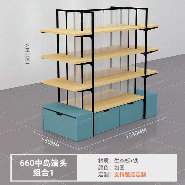 King Display Supermarket Metal Frame Shelf Wooden Drawer Cabinet Rack Set for Caps Snacks Cosmetics Retail Store Shops