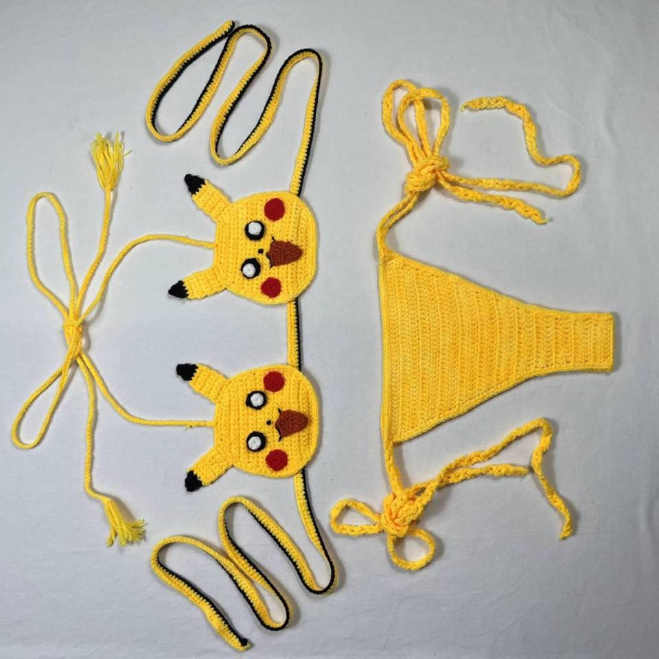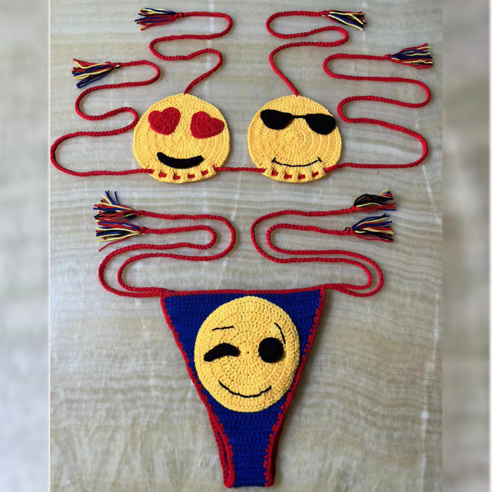 King Mcgreen Star Cartoon Handmade Crochet Bikini Set Sexy String 2 Pieces Checked Swimsuit Beachwear Bathing Cute Suit