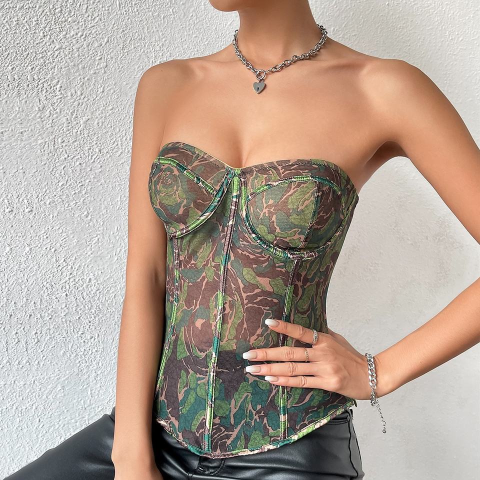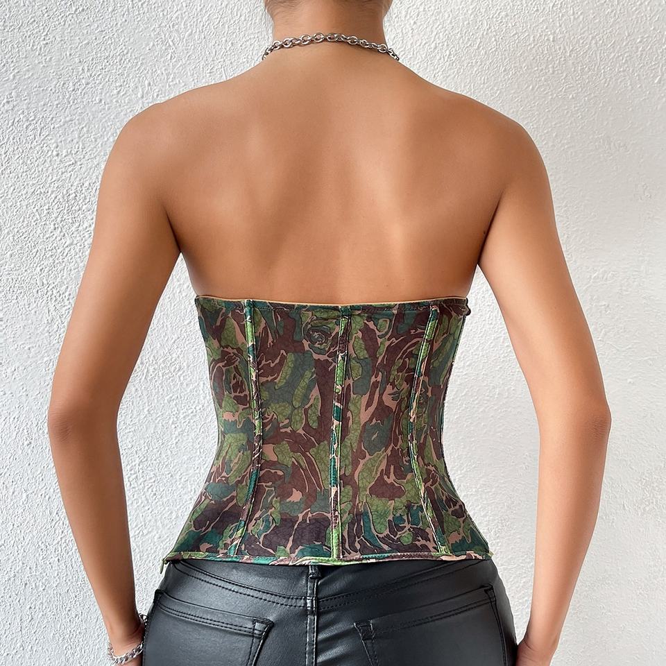 King Mcgreen Star Hot Selling Sexy Chest Bare Back Small Vest Wear Out Chest Green Abstract Pattern Wire Ring Fishbone Corset