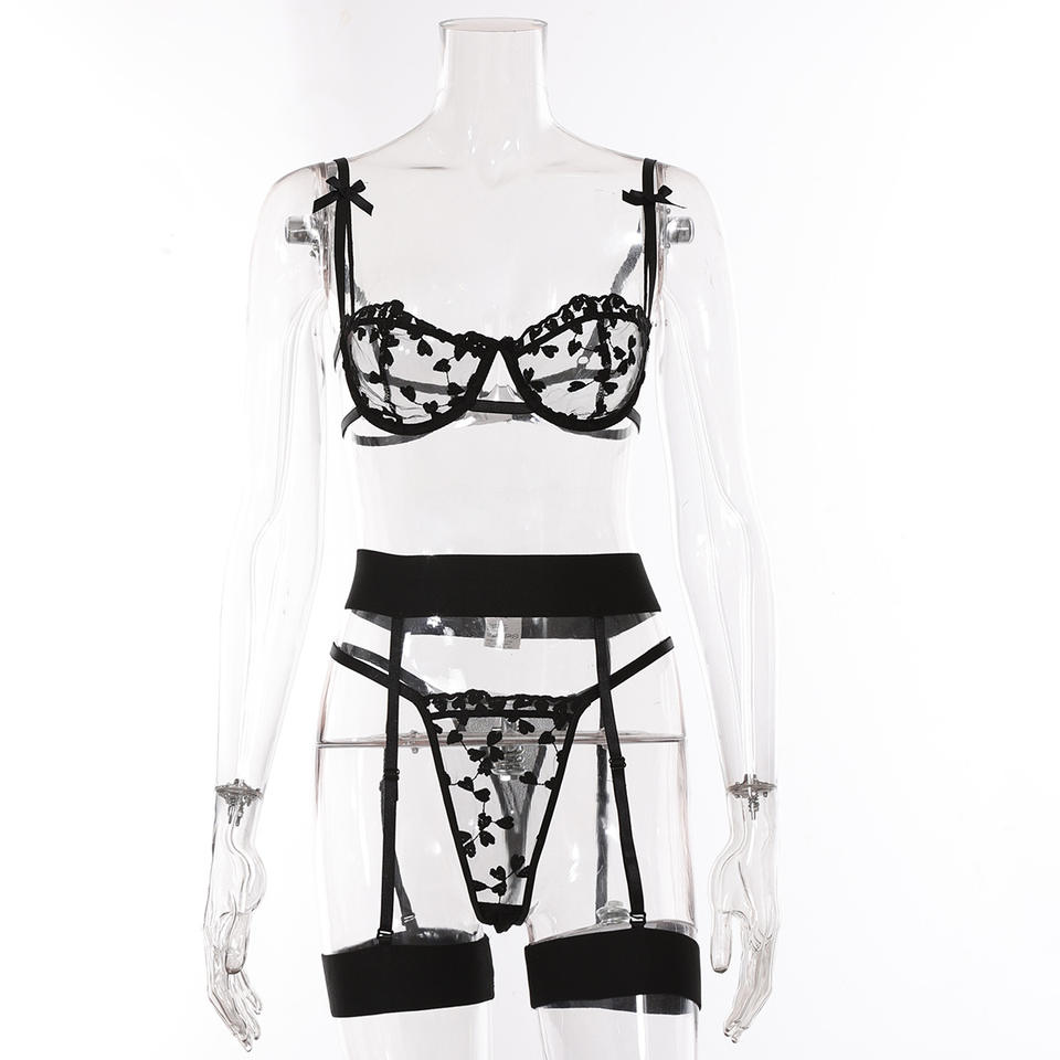 King Mcgreen Star Lingeries ricamo rosa Set trasparente 3 pezzi esotico intimo Hard Women Bowknot reggicalze vendita calda