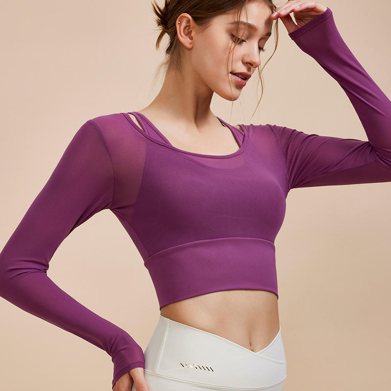 King Mcgreen Star Women Padded Yoga Shirts Long Sleeve Yoga Crop Tops Running Shirts Gym Shirt Workout Gym Top Sports
