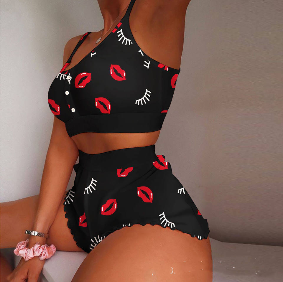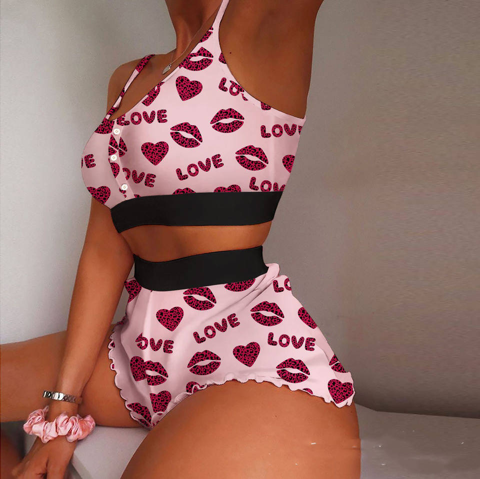 King Mcgreen Star Women's High Quality Pajamas Fashion Sexy Print Sling Two Piece Homewear Sweet Pajamas