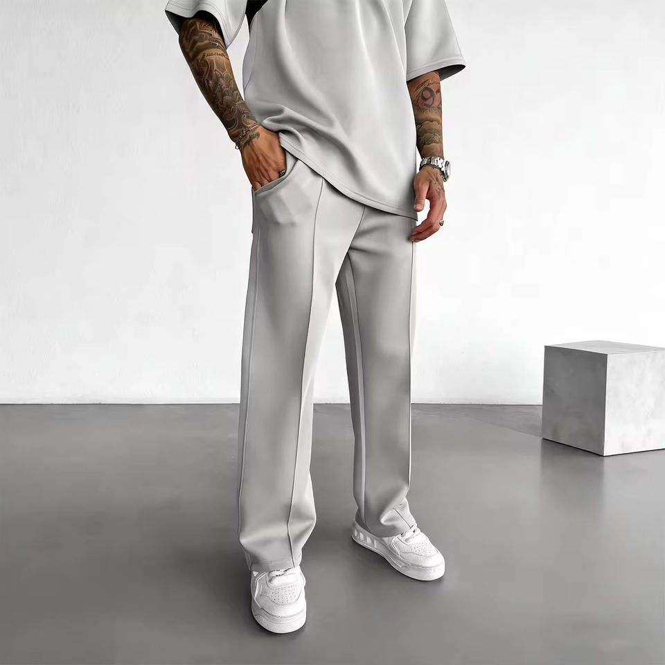 King Mcgreen Star's New Arrival Autumn Fashion Men's Casual Wide-leg Fleece Pants Mid Waist Solid Color Breathable Quick Dry