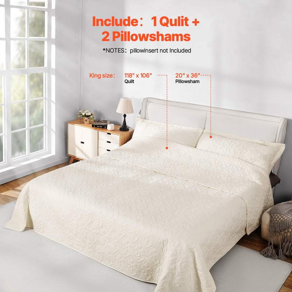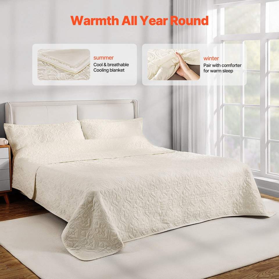 Set Copripiumino King Size 3 Pezzi in Cotone Leggero Beige 1 Copripiumino 2 Federe Misura King