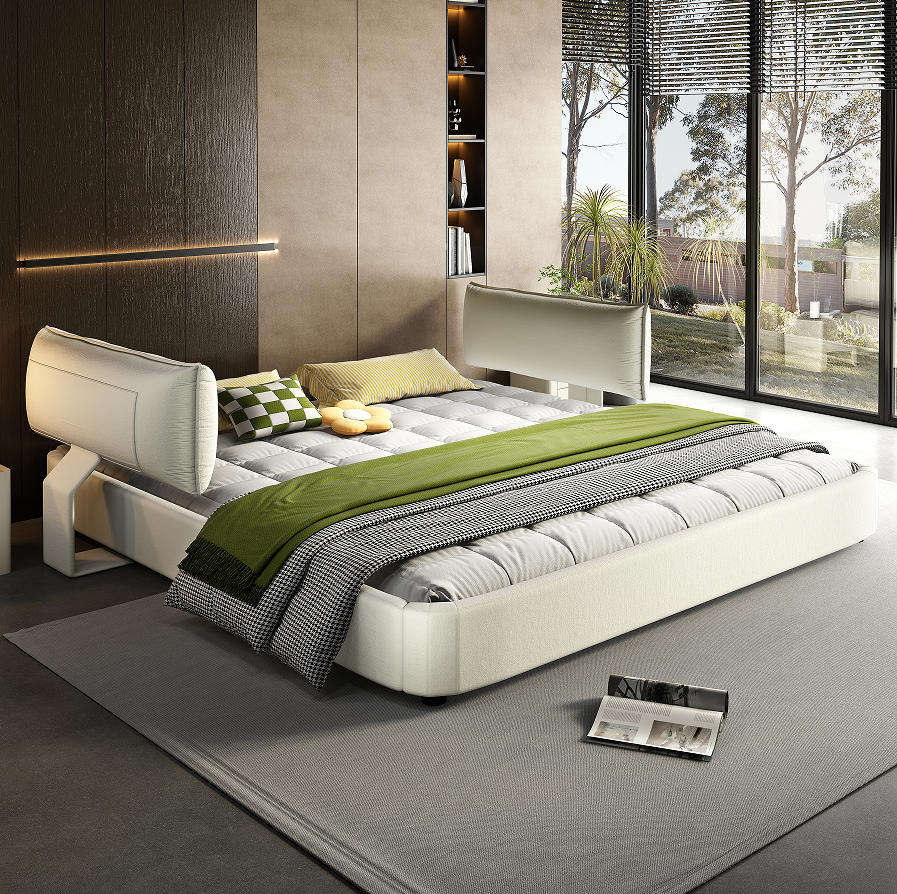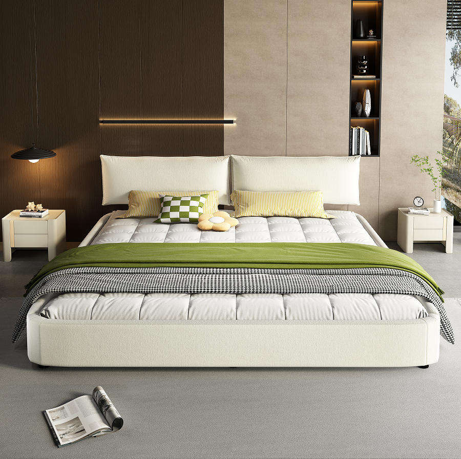 Letto King Size con Testiera Imbottita Oversize Movibile, Letto Rivestito in Ciniglia con Angoli Arrotondati