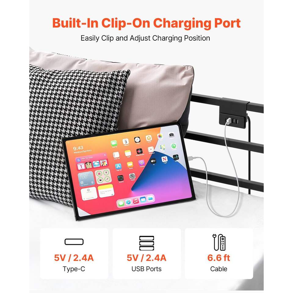 Letto a baldacchino King Size in metallo con quattro postelli, stazione di ricarica, doghe in acciaio resistente e supporto inferiore rinforzato