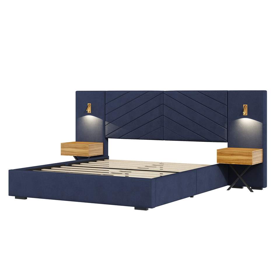 Letto King Size Imbottito in Velluto con Robuste Doghe in Legno e Testiera Wingback, Non Richiede Rete a Doghe