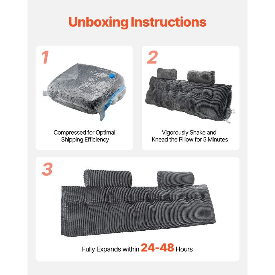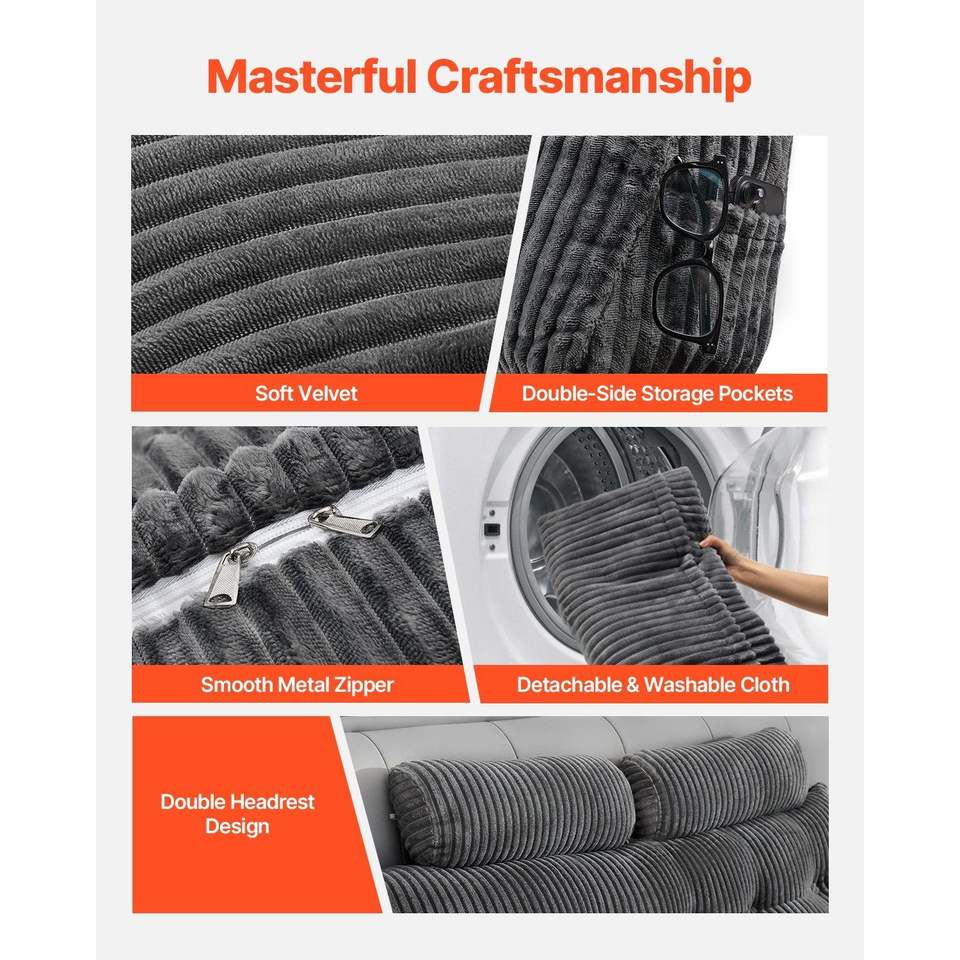 Cuscino per Testiera King Size con 2 Tasche Laterali e 2 Poggiatesta, Lavabile in Flanella, Cuscino da Lettura e Poggiatesta