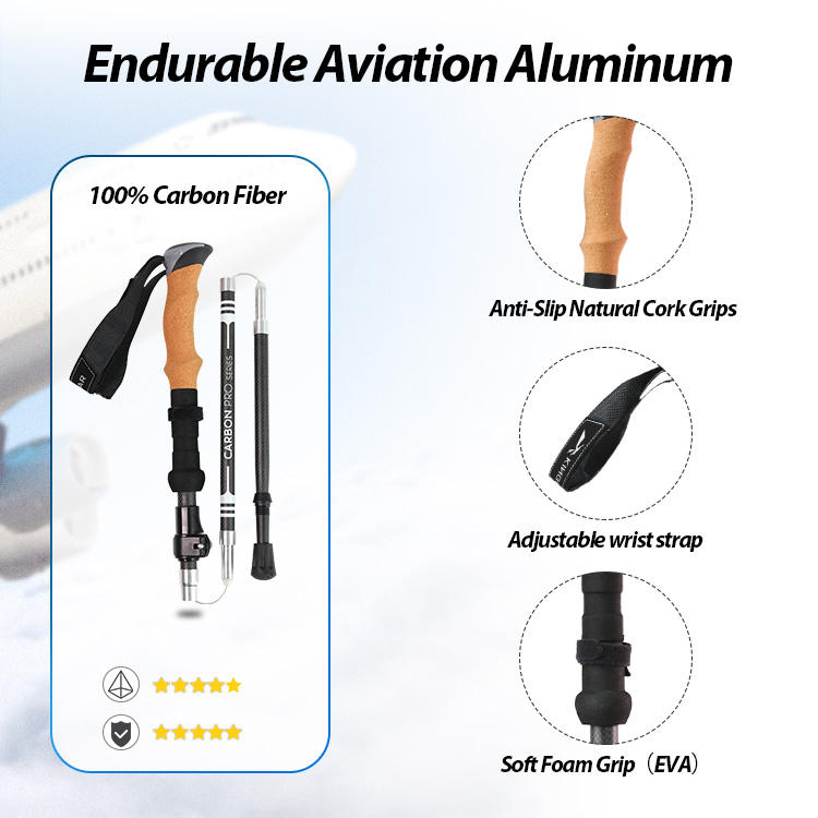 KingGear Bastone da Trekking Pieghevole in Fibra di Carbonio 3K Stile Nordico Alpino per Escursionismo