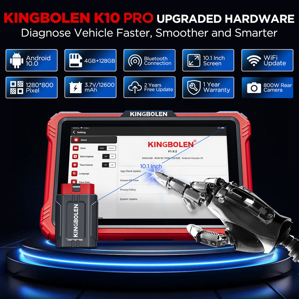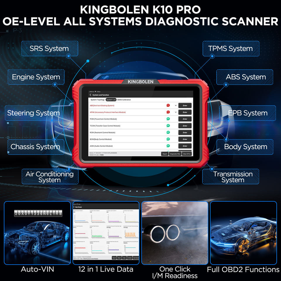 Kingbolen K10 PRO Scanner OBD2 Completo, Strumento Diagnostico per Auto con 40 Funzioni di Reset, Codifica ECU e Test Attivi